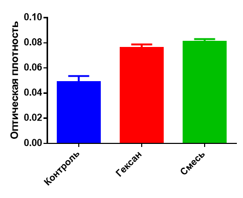 ПОЛ в опытной (гексан, 150 мкл в 50 мл, 60 минут и смесь